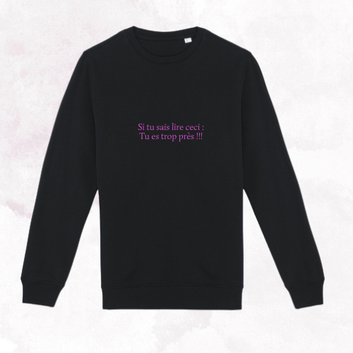 Découvrez notre ensemble Sweat-shirt et bodys matchy "Trop près !" pour la famille, parfaitement doux pour l'automne.